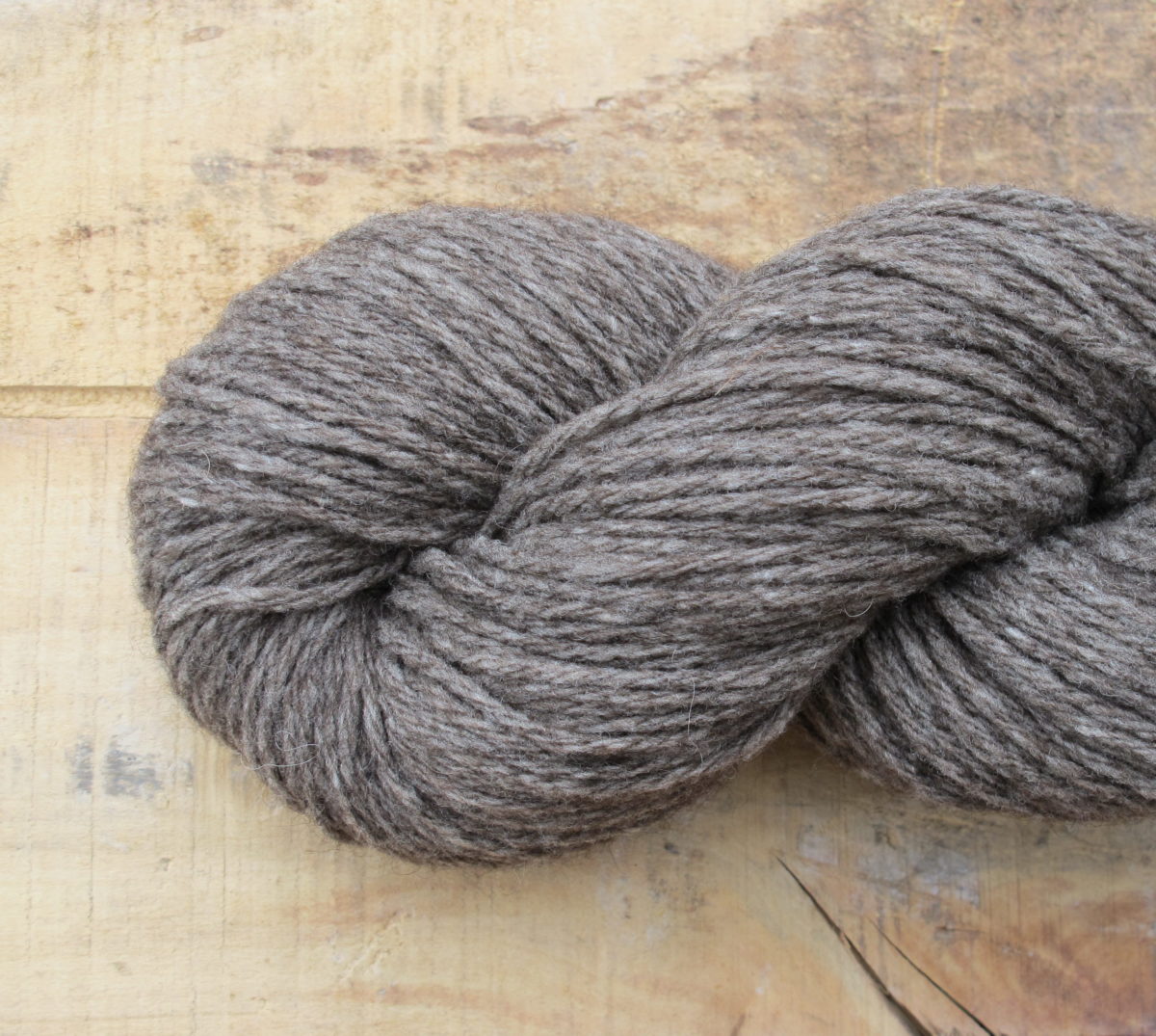 Merveilleuse laine de yack au coloris naturel marron glacé-gris , 50% duvet de yack et 50% mérinos d’Arles Français.